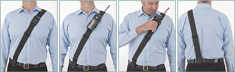 Sam Browne Harness 60mm, radio can be mounted shoulder/chest area, suits any KlickFast case. The harness connects to a utility belt on the front and back with two KlickFast docks. The harness also incorporates a webbing shoulder strap with a Sam Browne chest mounting dock. Suits any KlickFast case.